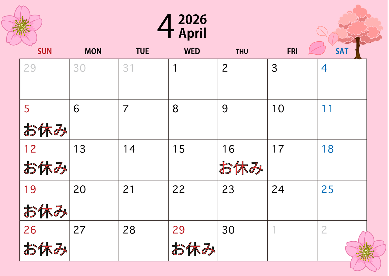 4月の営業日のお知らせ
